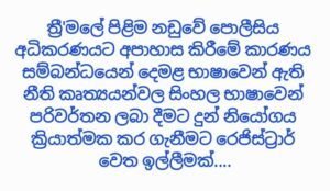 ත්රී’මලේ පිළිම නඩුවේ පොලීසිය අධිකරණයට අපාහාස කිරීමේ කාරණය සම්බන්ධයෙන් දෙමළ භාෂාවෙන් ඇති නීති කෘත්යයන්වල සිංහල භාෂාවෙන් පරිවර්තන ලබා දීමට දුන් නියෝගය ක්රියාත්මක කර ගැනීමට රෙජිස්ට්රාර් වෙත ඉල්ලීමක්….