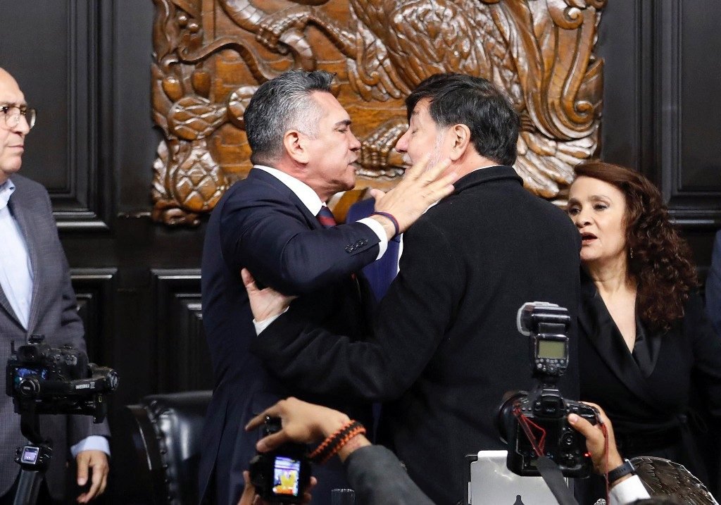 Alejandro Moreno and Senate president Gerardo Fernandez Noroña squared off as lawmakers were singing the national anthem.