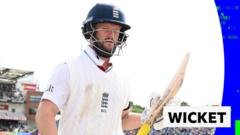 Ben Duckett falls for 149, leaving England on 253-3 and needing another 118 runs to beat India in the first Test at Headingley.