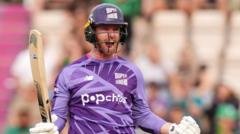 Graham Clark hits the final ball for six to snatch a dramatic three-wicket victory for Northern Superchargers against Southern Brave in The Hundred.