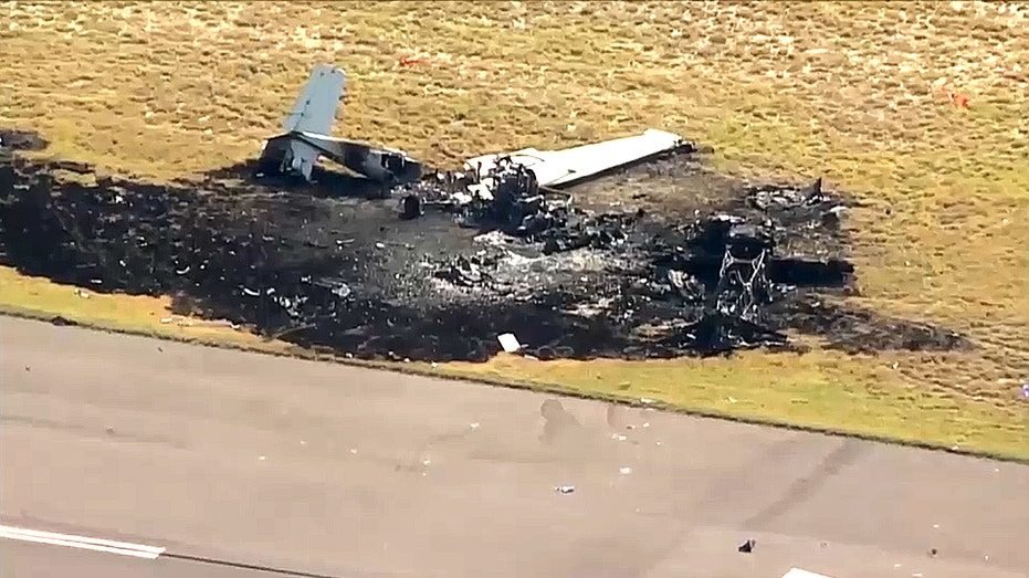 Both planes caught fire when they hit the ground, according to the sheriff’s office. Plumes of smoke could be seen rising from the wreckage as first responders and bystanders tried to douse the fires.