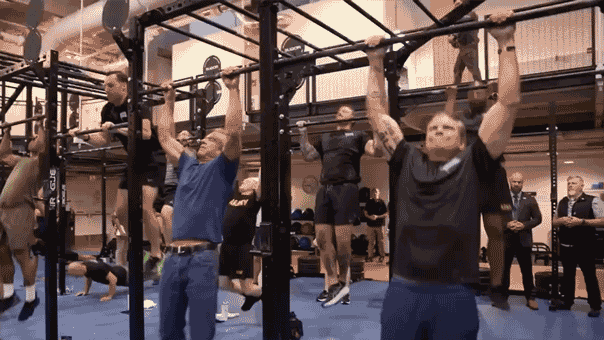 “We had our big Pete and Bobby challenge today, 50 pull ups. 100 push-ups. You try to get under five minutes,” Kennedy said while wearing his typical gym attire of jeans and a T-shirt.