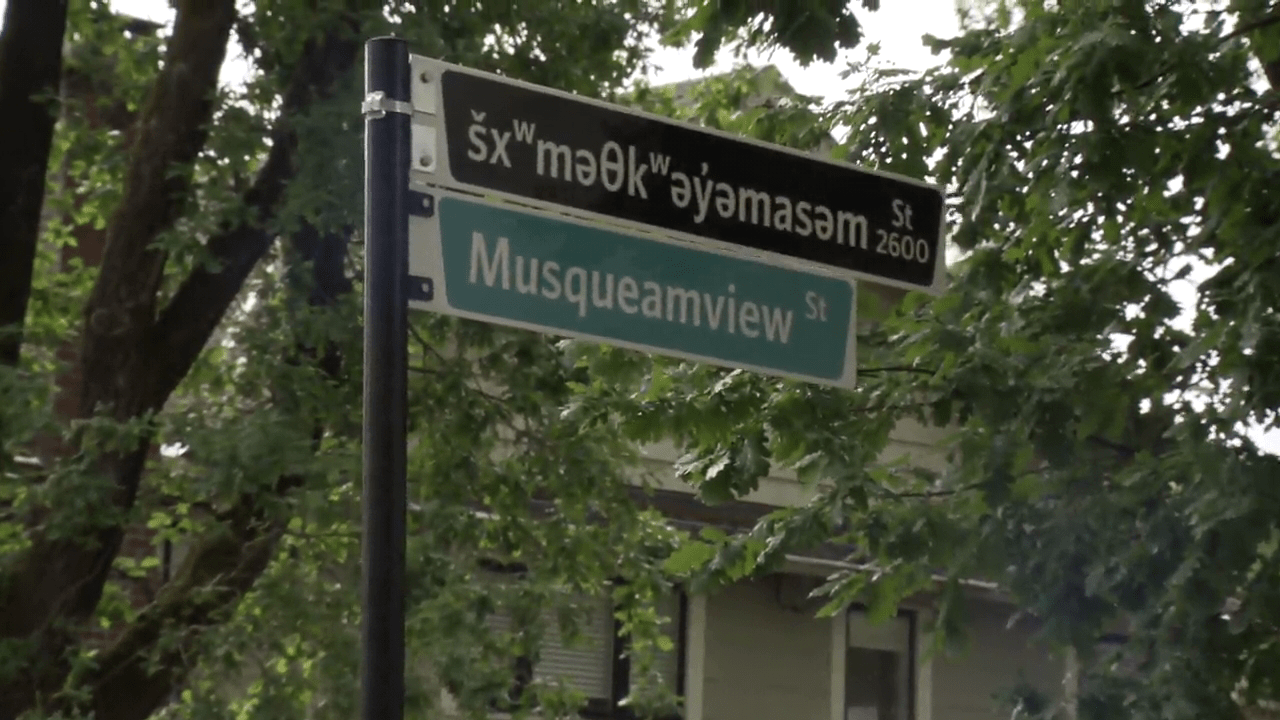 A Vancouver street formerly named for a racist colonial official has been renamed šxʷməθkʷəy̓əmasəm Street, with new signage unveiled to the public Friday.